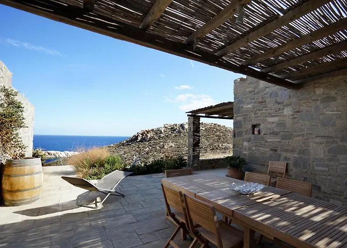 Вилла Traditional Cycladic Stone House предлагает 2 спальни и веранду для загара, солнечную террасу и сад. В комнатах предоставляется патио, балкон и диван, а на оснащённой всем необходимым кухне - холодильник, кухонная утварь и стеклянная посуда.